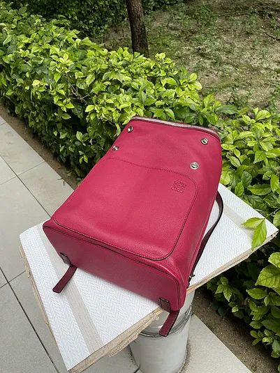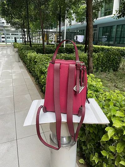 กระเป๋าเป้ Goya สี Raspberry ดีไซน์ทรงเหลี่ยมสุดหรู ผลิตจากหนังลูกวัวลายเกรนเนื้อนุ่ม ให้สัมผัสพรีเมีย